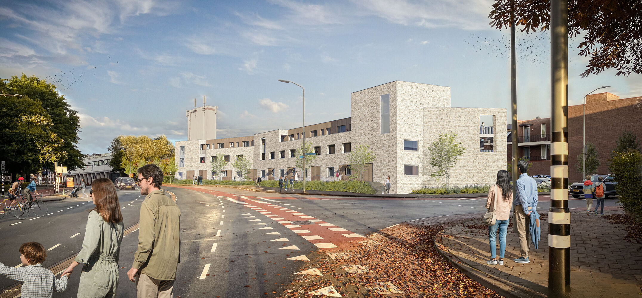 Smeets Bouw is gestart met de bouw van dit fraaie, met houten elementen vormgegeven woongebouw met drie bouwlagen.